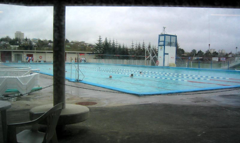 One highlight of Reykjavík for me was the Laugardalslaug geothermally heated pool complex, right by the youth hostel (did I mention the "cheap science" aspect of this trip?). There are places like this sprinkled all over Iceland, though not all as luxurious. It had a 50m outdoor pool, 5 jacuzzis ranging from hot to torturously hot, a steam room... |