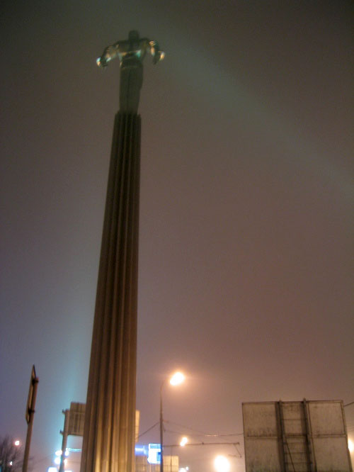 Outside the Academy, the giant intersection is dominated by a very 30's futurist sculpture of Yuri Gargarin, first man in space.