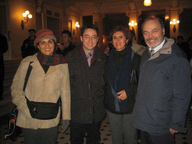 A pose during an evening excursion, in the lobby of the Bolshoi.