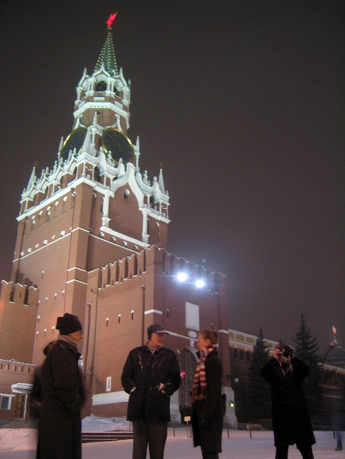 WCRP members speaking in Red Square in front of the Kremlin with Julia, a meteorology student who served as our guide for the evening, and along with other students made up the working staff of the meeting.