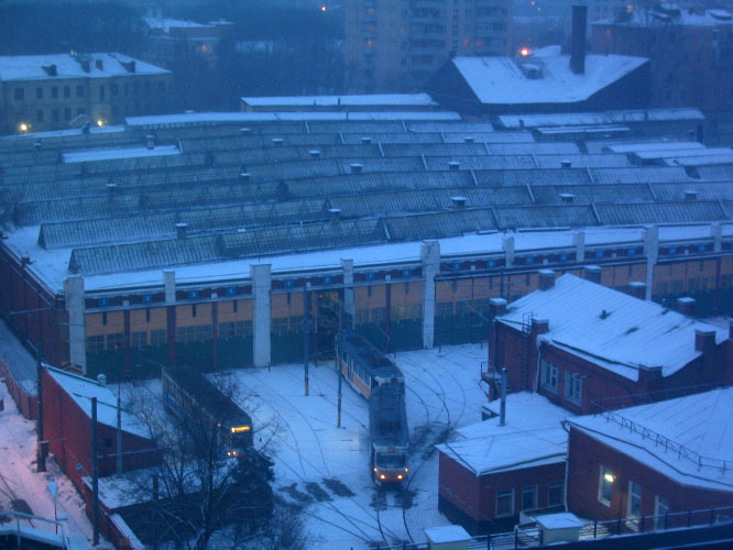A view out of my window of a tram depot.
