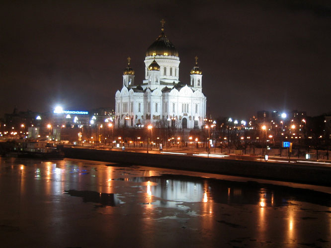 The massive Cathedral of Christ the Savior, an exact 1997 reconstruction of the church destroyed by Stalin. He wanted to build a giant skyscraper topped with a 100 m statue of Lenin, but the project foundered and the foundation then became the world's biggest swimming pool. |