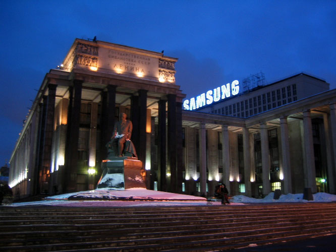 The continuation of my walk up the Arbat brought me towards the Kremlin, but I was tickled by the 'Biblioteka CCCP Lenina', now dominated by a giant Samsung sign.