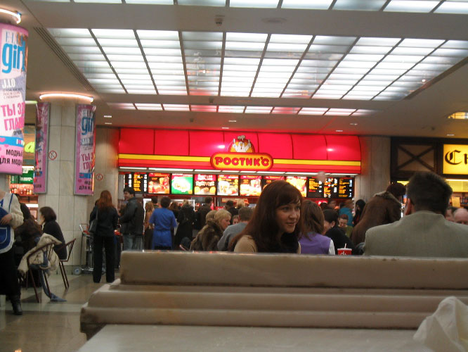 And gabbing in the food court by 'Rostik's', a Russian equivalent of KFC.