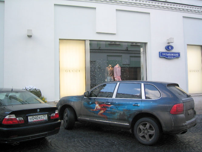 Even in a city full of BMW's and Mercedes', this specially decorated but not recently washed Porsche SUV stood out.