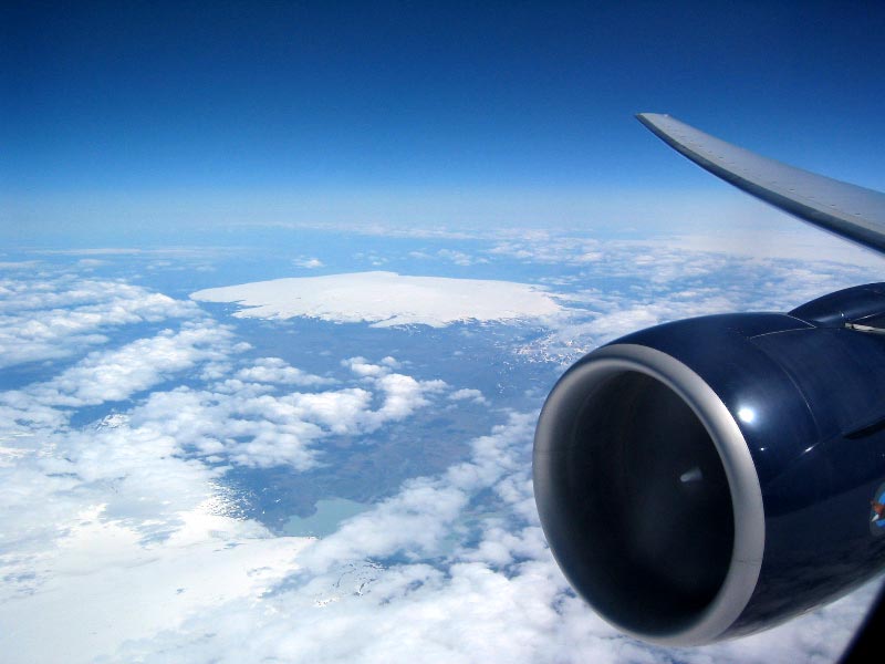 The end of June and another trip, this time all the way around the world, for work: a job interview at the University of Hawaii, a conference in Sapporo, and seminar in Tokyo, and some vacation: a visit to my sister and fiancé Simon in Seoul, a weekend in Kyoto, and quick stops (who can resist on a fully flexible RTW ticket?) in Bombay and Singapore on the way home. My first flight, from Paris to San Francisco, saw me flying right over Iceland. |