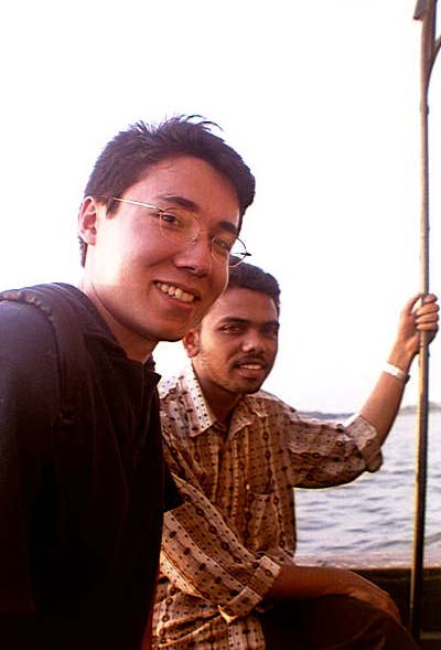 On the ferry to Ernakulam: our newfound friend owned a cashew and spice store in Allepey.