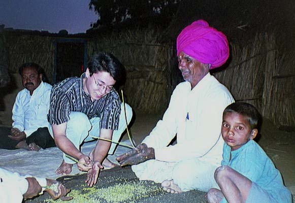 The mayor himself, shucking freshly-roasted sorghum for his surprise visitors.