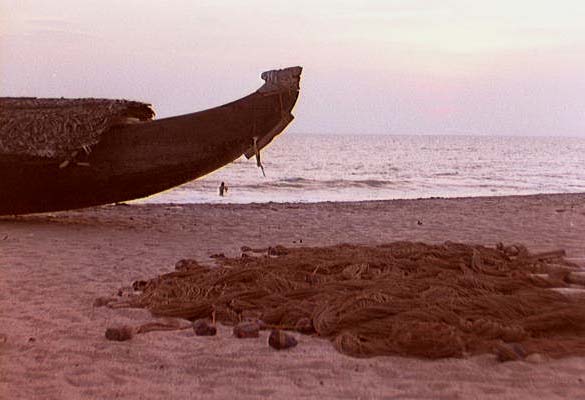 The net laid out on the beach.