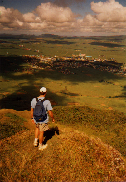 Alistair, looking down at the towns of the central plain on our journey down from Le Pouce.