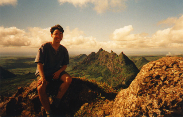 Me at the top of Le Pouce looking towards Pieter Both, which is famous for the large boulder balanced at its very peak. Alistair, my bunkmate on the ship, and I took off one afternoon with the intent of getting to the top of something. Armed with nothing, we set out, and promptly got lost in the jungle. After several hours of hacking our way through the undergrowth, we finally found the path, and more importantly, a friendly group of Mauritians who pointed us towards a stream and a giant patch of Chinese gooseberries, which sustained us to the top. |
