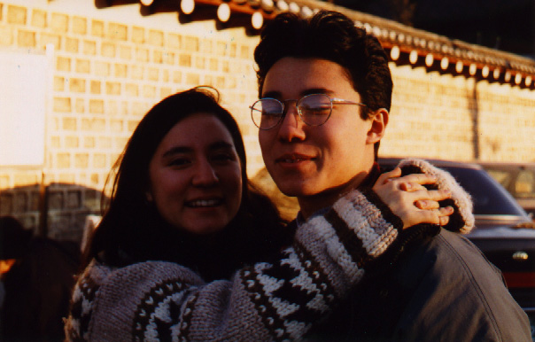 Heidi and Max hamming it up outside the imperial palace and gardens, Seoul.