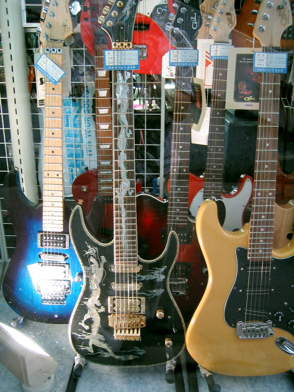 The tradition inlaid mother-of-pearl decoration has made its way to a guitar.