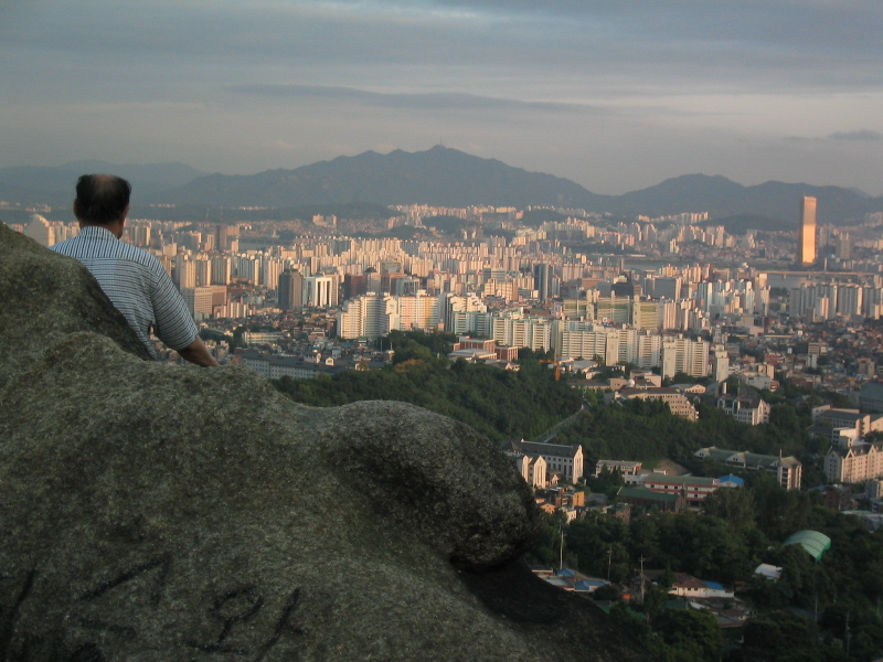 Meditating over the bustling city.
