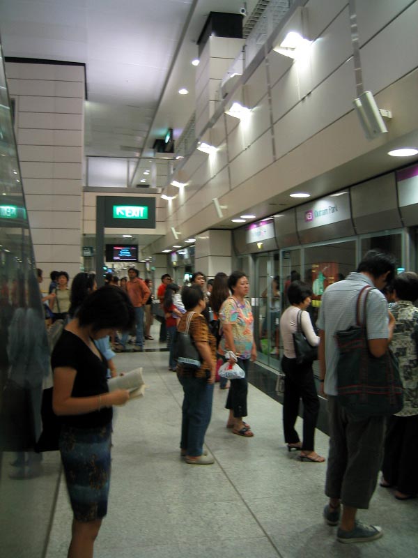 The sparkling subway system. One flaw though I discovered the hard way, there's no way to change your mind about where you want to get off mid-course - the machines reject you! You have to exit at your preplanned exit station and buy a new ticket. Somehow this seemed very Singaporean. |