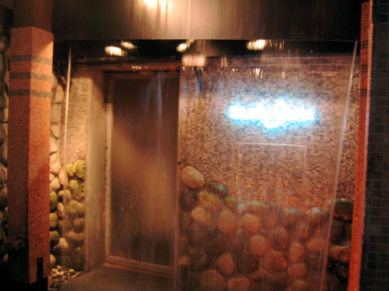 This karaoke bar's facade had an electronically controlled waterfall that stopped whenever someone wanted to walk in.